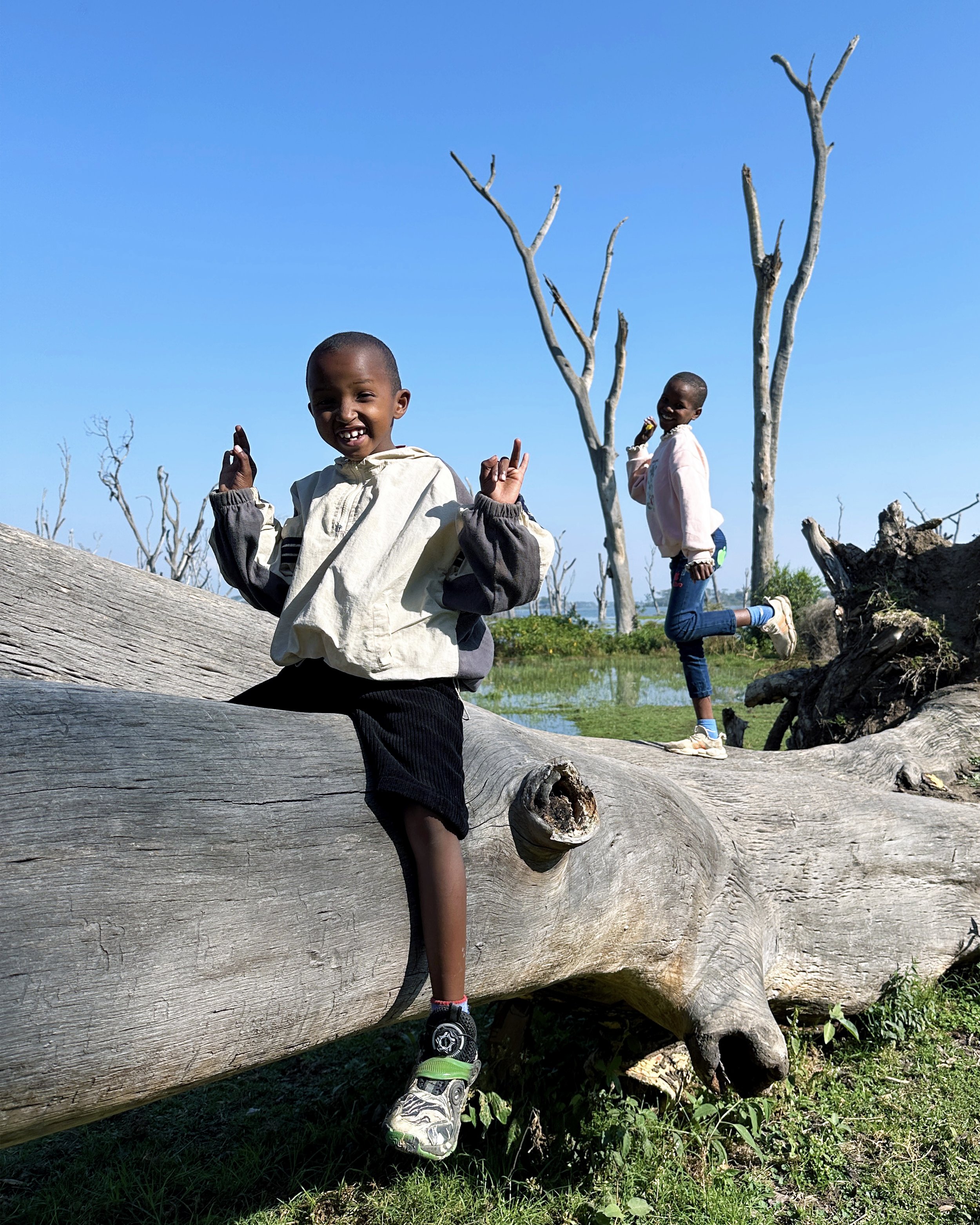 A weekend camping trip at a wild animal sanctuary with zebras, giraffes, impalas, wildebeest, hippos, and so many other animals roaming around the tents! They enjoyed dancing, storytelling around a campfire, delicious food, and even a boat safari.